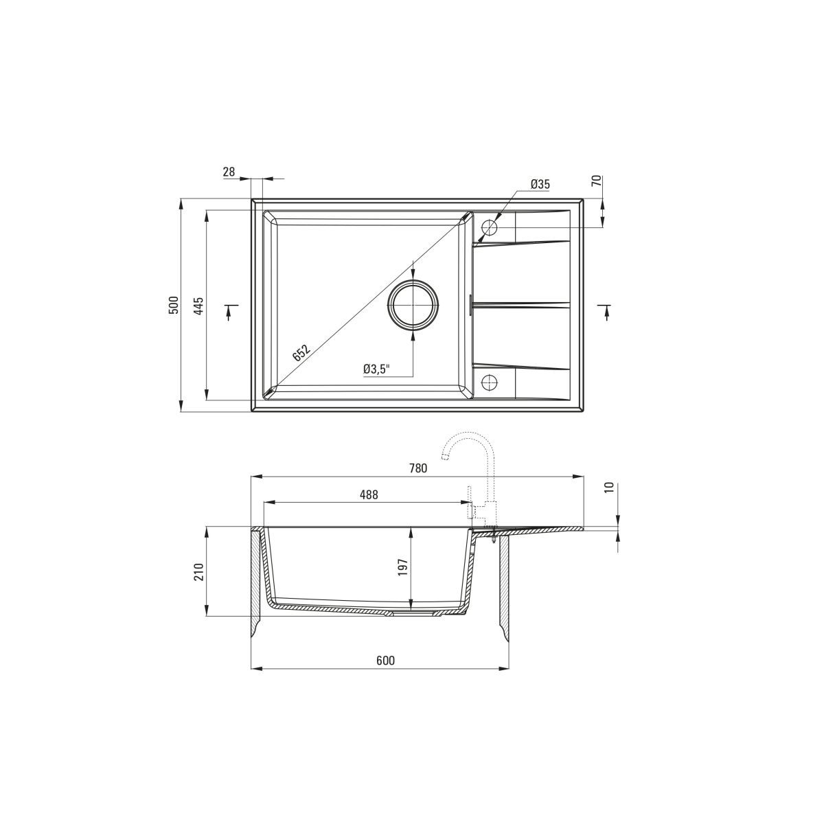 - Umkehrbare Spüle – kann mit der Kammer links oder rechts montiert werden