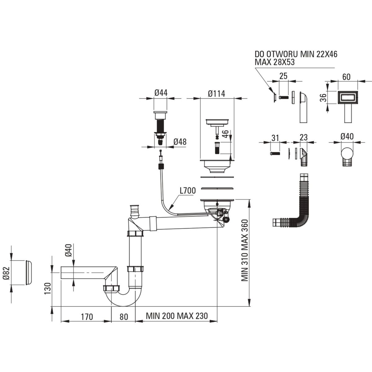 - Platzsparender Siphon, der unter anderem die Mülltrennung erleichtert