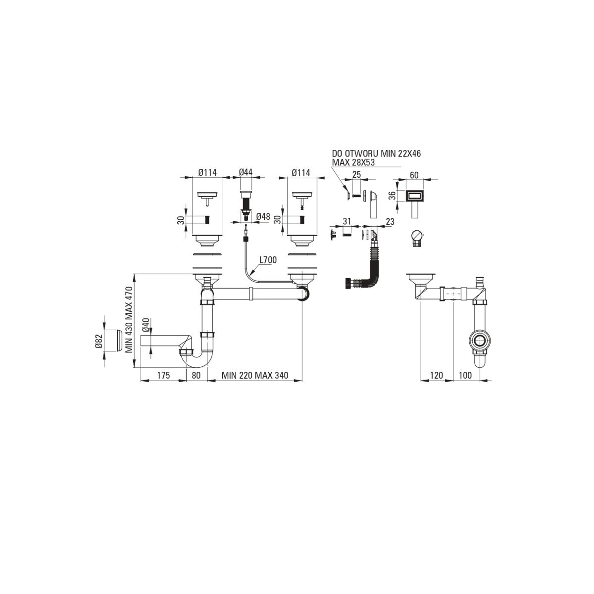 - Platzsparender Siphon, der u. a. die Mülltrennung erleichtert