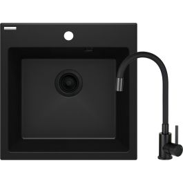 Die Granitspüle mit Wasserhahn bildet ein komplettes Set für die Küche. Sie wurde aus strapazierfähigem, natürlichem Granit hergestellt, der nicht nur gegen hohe Temperaturen und Temperaturschwankungen, sondern auch gegen Stöße und Verfärbungen gemäß der europäischen Norm PN-EN 13310 beständig ist. Darüber hinaus wurde er mit einer wasserabweisenden Schicht versehen, die das Abfließen einzelner Tropfen erleichtert. In derselben Farbgebung ist auch die Armatur mit einem praktischen Auslauf erhältlich. Die praktische 1-Kammer-Spüle mit Abtropffläche ist die perfekte Lösung für kleine Küchen und Einzimmerwohnungen mit Kochnische. Sie dient gleichzeitig als Trockner, da die profilierte Oberfläche das von Geschirr oder gewaschenen Lebensmitteln abfließende Wasser effizient ableitet.