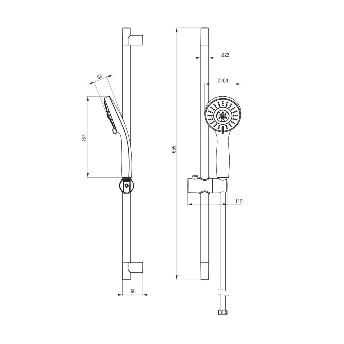 - Inbegriffen: Duschkopf, Duschschlauch, Duschstange