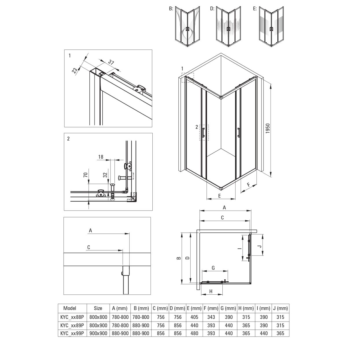 - Möglichkeit der Montage der Kabine ohne Duschwanne direkt auf den Fliesen