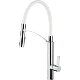 Die Gerbera-Spültischarmatur vom Typ „U” mit ausziehbarer Brause in einer Kombination aus glänzendem Chrom und zeitlosem Weiß ist äußerst praktisch und komfortabel in der Anwendung und dabei modern und sehr effektvoll. Ausgestattet mit einem flexiblen Auslauf und einer ausziehbaren Brause ermöglicht diese Armatur eine einfache Reinigung des Spülbeckenbereichs und erleichtert das Befüllen hoher Gefäße, das Waschen von Gemüse und das Händewaschen. Diese Armatur verfügt außerdem über einen Halter, mit dem der Auslauf in einer universellen, alltäglichen Position gehalten werden kann, sowie über einen Strahlbelüfter. Das interessante, professionelle Design, die dezenten Farben, die zu hellen Innenräumen passen, und die hohe Funktionalität machen die Gerbera-Spültischarmatur zu einer hervorragenden Wahl für Menschen, die viel und oft kochen und gleichzeitig Wert auf ein stilvolles Aussehen ihrer Küche legen.