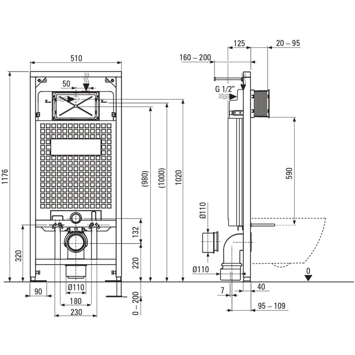 - Höhenverstellung des Rahmens [mm]: 200