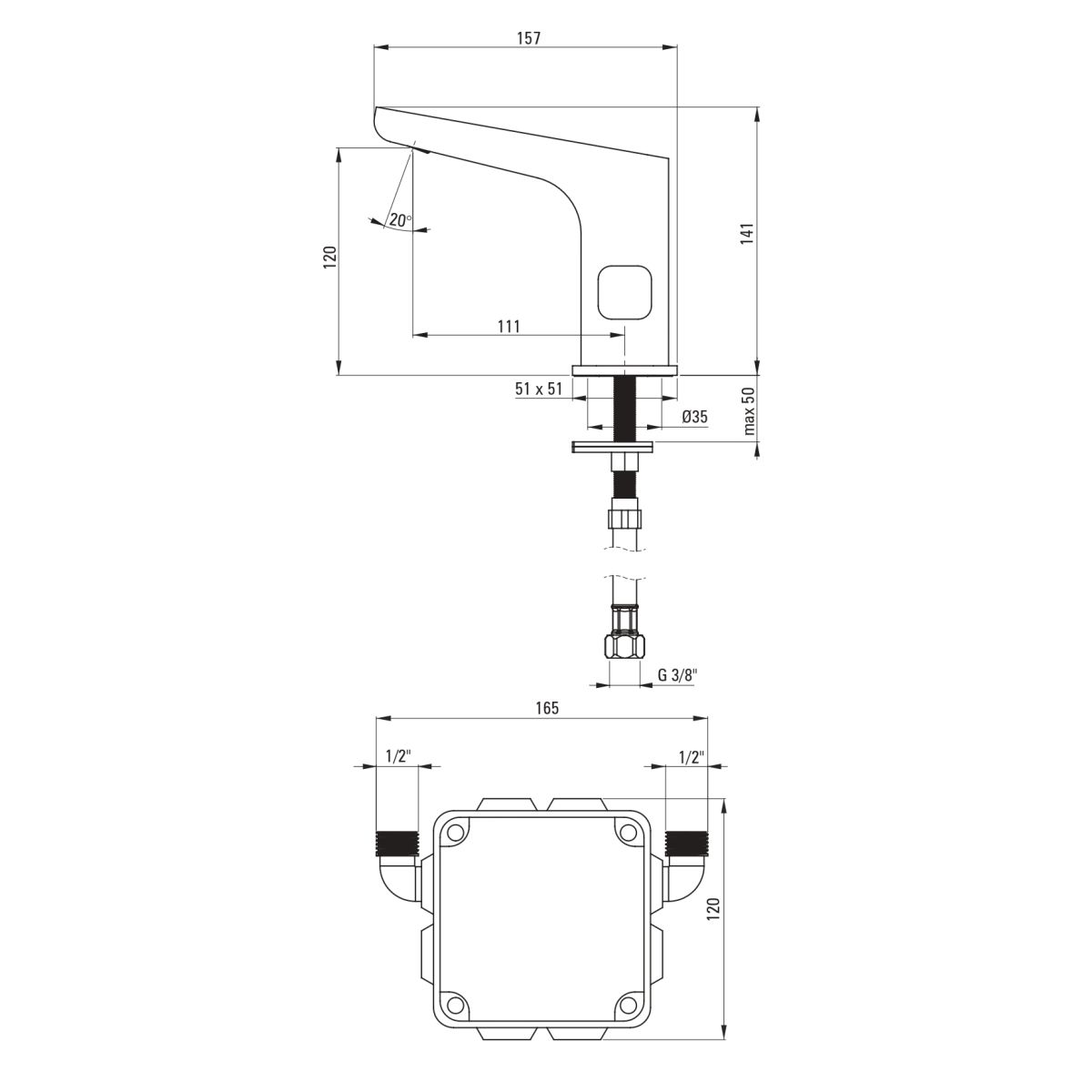 - Gesamthöhe der Armatur: 14,1 cm