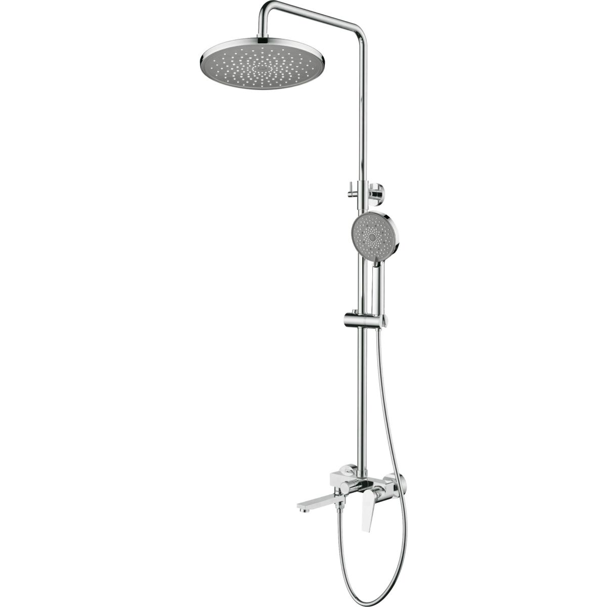 Die Regendusche in glänzendem Chrom mit höhenverstellbarem Oberteil ermöglicht eine individuelle Anpassung der Höhe an Ihre Bedürfnisse. Das Anti-Calc-System im Duschkopf und in der Handbrause hilft, Kalkablagerungen zu reduzieren, erleichtert die Reinigung und verlängert die Lebensdauer des Produkts. Der Stahlschlauch sorgt für Langlebigkeit und der bewegliche Auslauf ermöglicht eine bequeme Nutzung, insbesondere in Duschkabinen mit Badewanne. Eine praktische und funktionale Lösung für den täglichen Gebrauch.