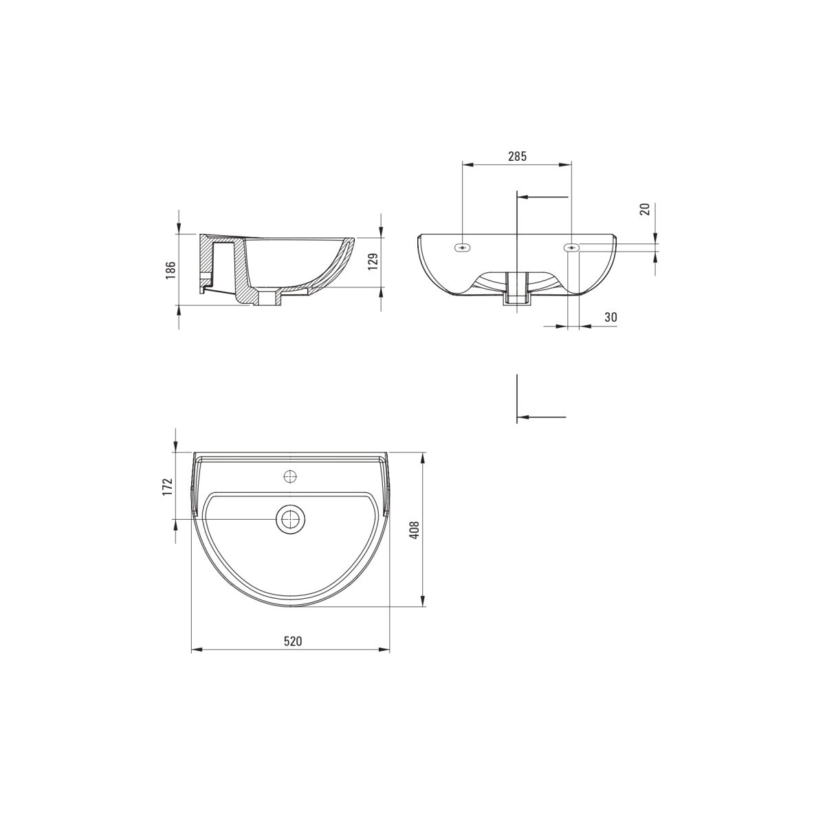 Deante Jasmin Waschbecken 51.8x40.3 cm halbrund weiß CDJ6U5W