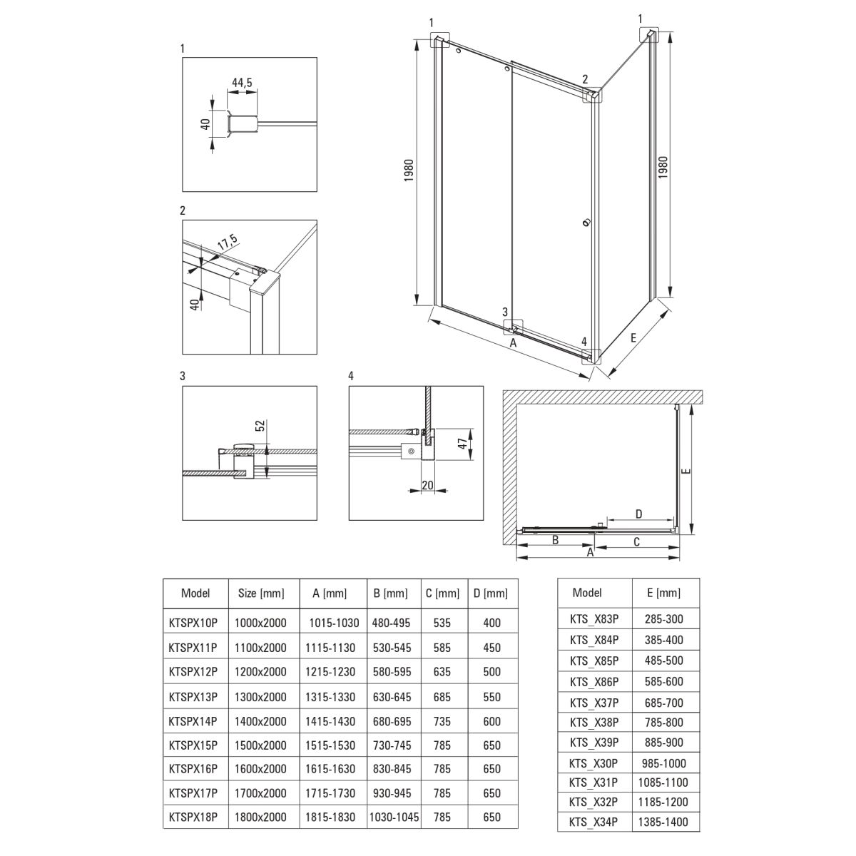 - Möglichkeit, die obere Führungsschiene und die Schwellenleiste zu kürzen, um die Abmessungen zu verringern: Ja