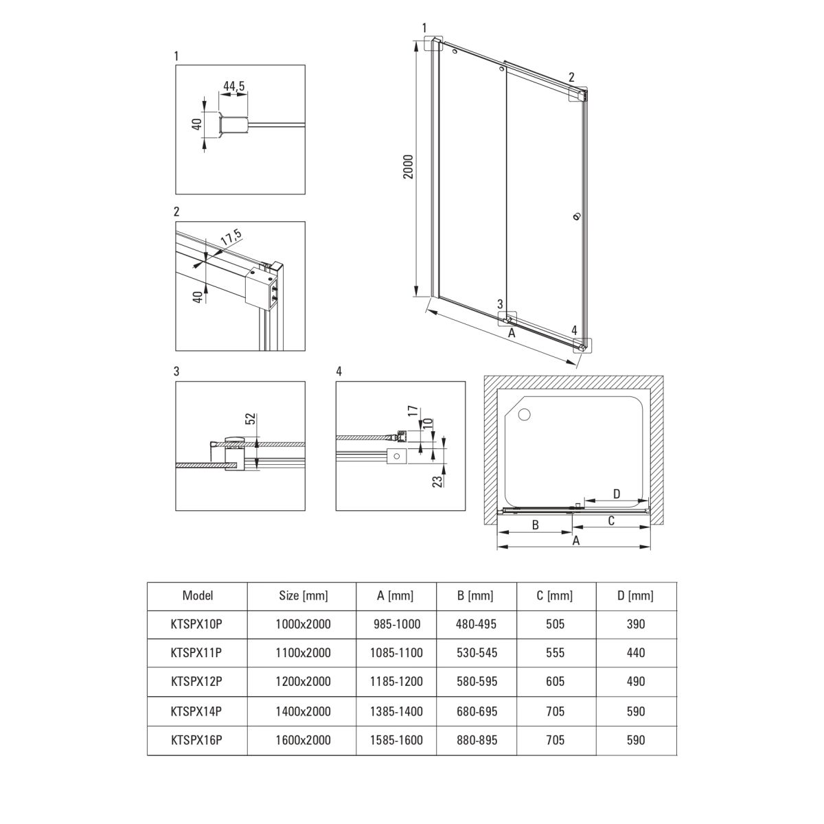 - Montage: in einer Nische oder kombinierbar mit Walk-in KTS