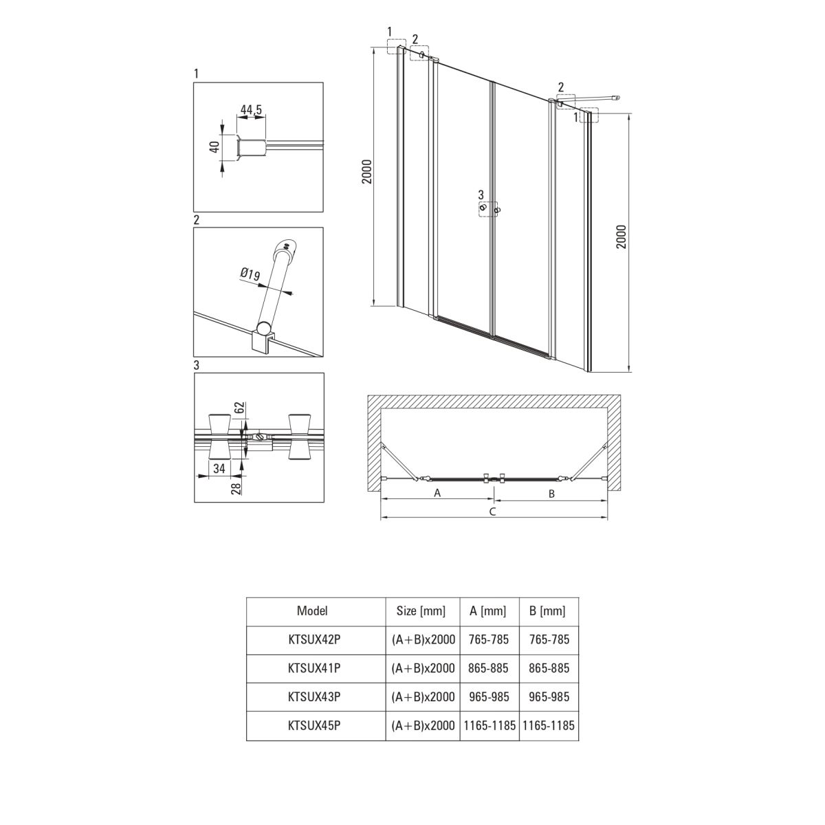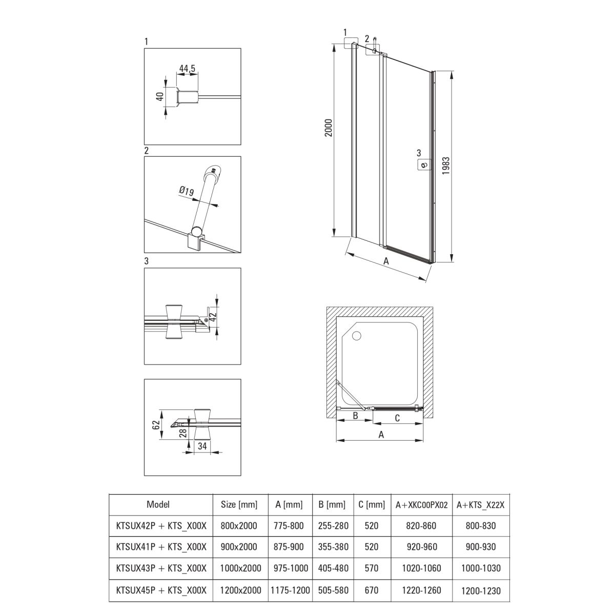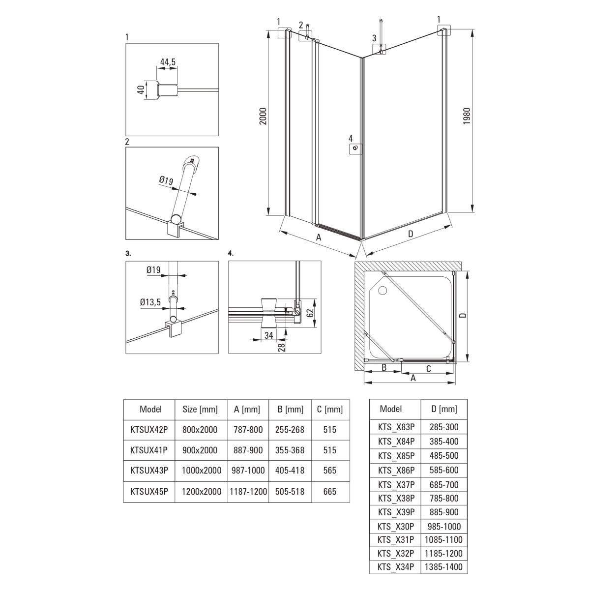 - Montage: zur Ergänzung der Duschkabinen KTS, zur Ergänzung der Walk-in-Duschkabinen KTS