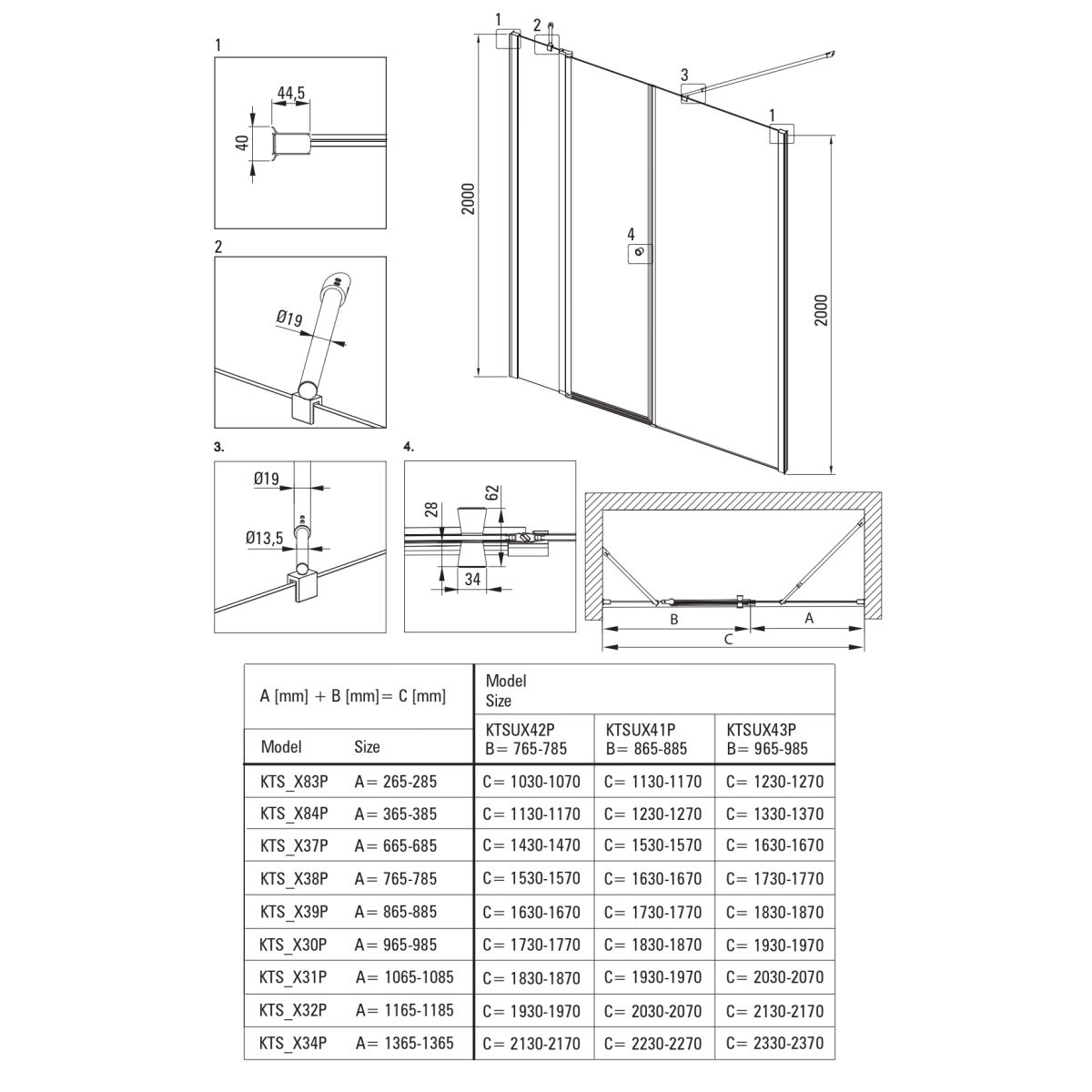 - Möglichkeit der Montage des Produkts ohne Duschwanne, direkt auf den Fliesen