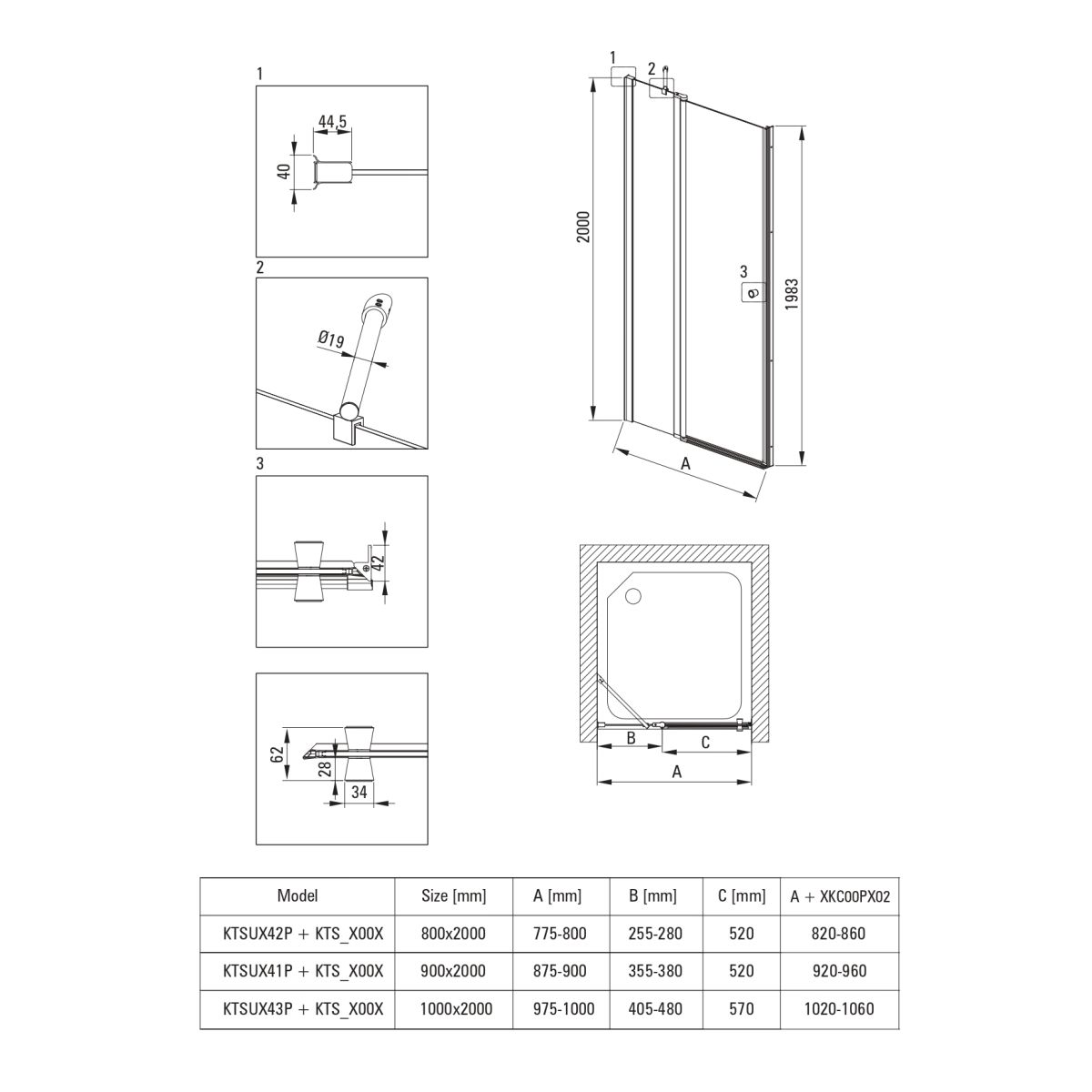 Der Preis gilt nur für die Duschtür für die Nische. Bei der Montage der Tür in der Nische muss das Profil KTS_N00X erworben werden.
