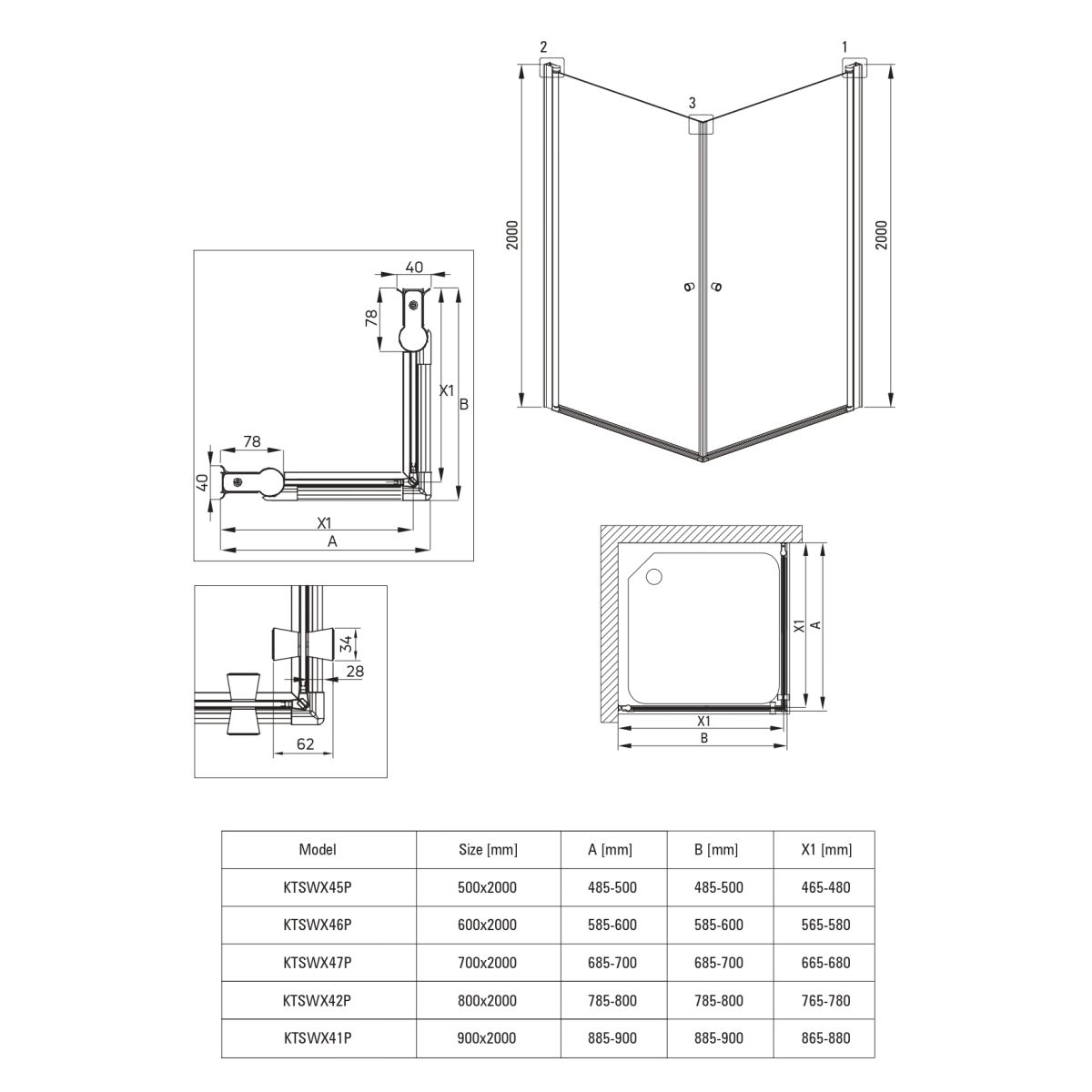 - Möglichkeit der Montage der Kabine ohne Duschwanne direkt auf den Fliesen
