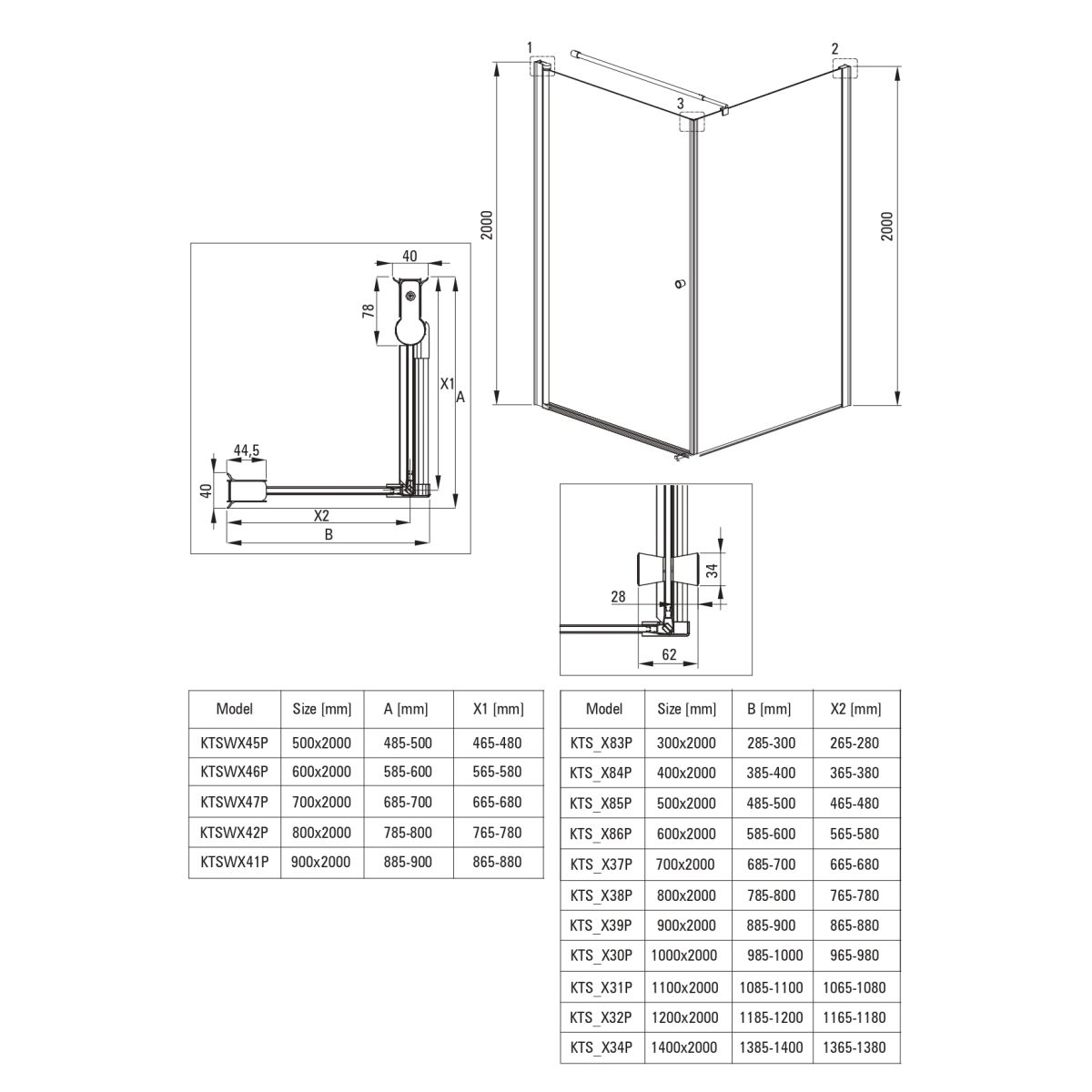 Der Preis gilt nur für die Duschtür für die Nische. Für die Montage der Tür in der Nische muss das Profil KTS_N00X erworben werden.