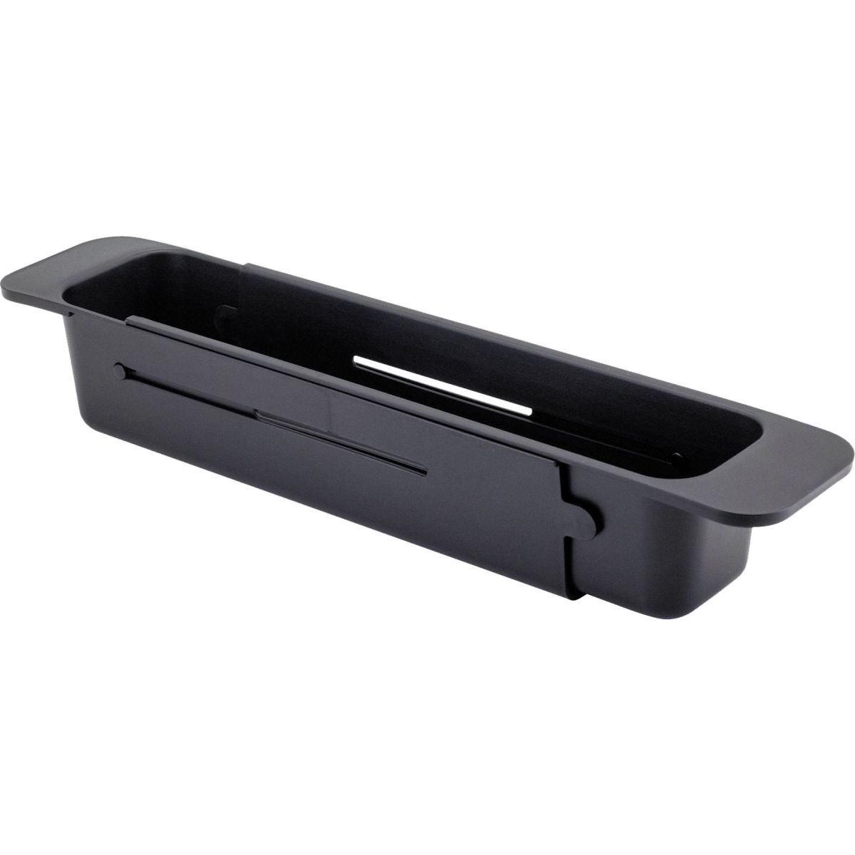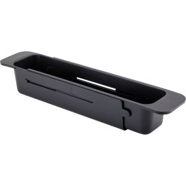Der schwarze ausziehbare Korb für die Spüle ist ein sehr nützliches Küchenaccessoire. Er hat eine rechteckige Form mit einem perforierten Boden, der das Abfließen von Wasser ermöglicht, wodurch er sich ideal zum Waschen von Gemüse und Obst eignet. Der Korb ist ausziehbar, sodass er an jede Spülbeckengröße angepasst werden kann. Er verfügt außerdem über Griffe an den Seiten, die das Herausnehmen und Tragen erleichtern. Das Design ist minimalistisch und modern und passt zu den meisten Spülbecken.