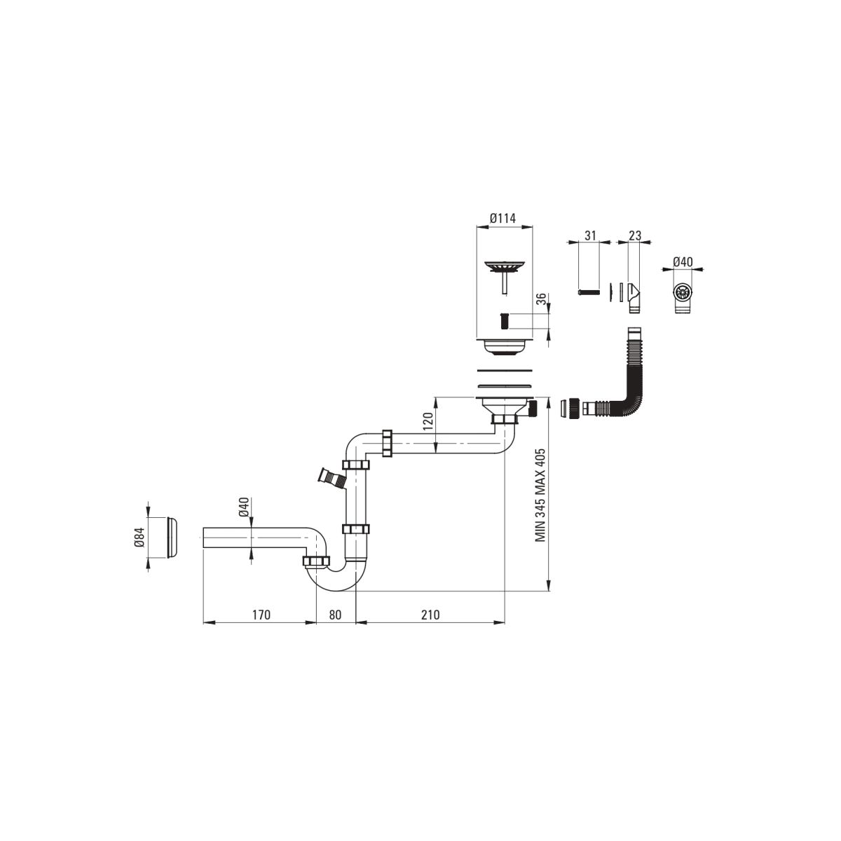 - Platzsparender Siphon, der unter anderem die Mülltrennung erleichtert