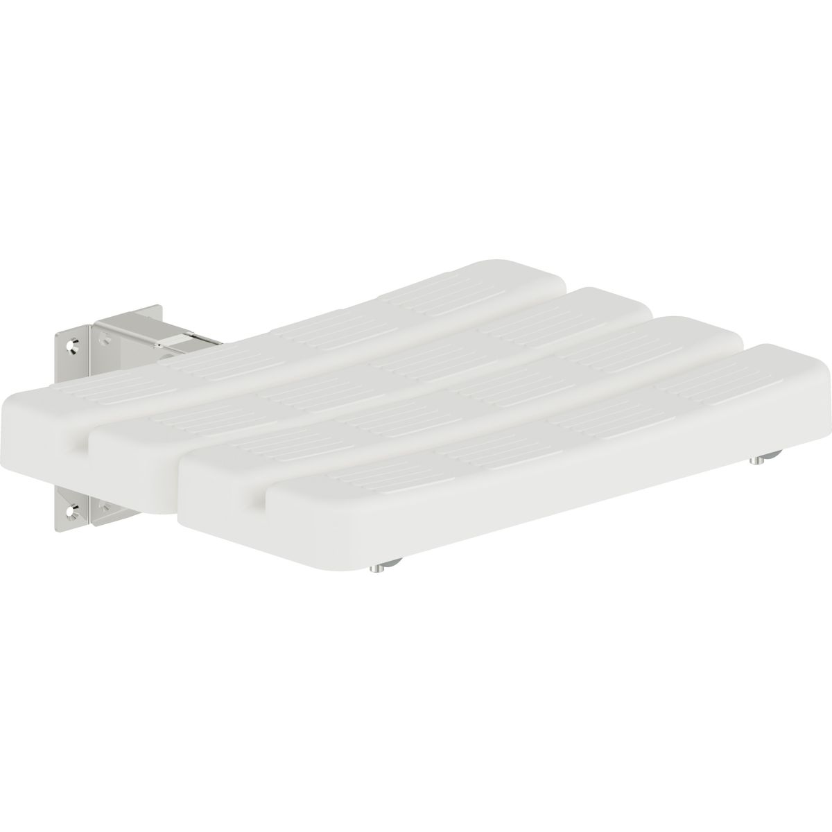 Eleganter, weißer Duschsitz, zusammenklappbar. Im Lieferumfang enthalten ist ein Montageset für harte Untergründe (Mauern aus Vollziegeln/Beton). Maximale Tragkraft 150 kg. Das Produkt ist ein Medizinprodukt.