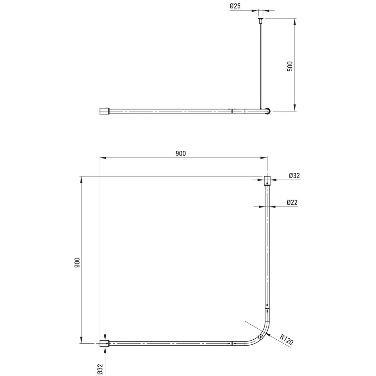 Stange zum Aufhängen eines Duschvorhangs, der die Abtrennung des Duschbereichs, z. B. innerhalb einer Badewanne, ermöglicht. Das Produkt ist aus hochwertigem, im Labor getestetem Stahl gefertigt.