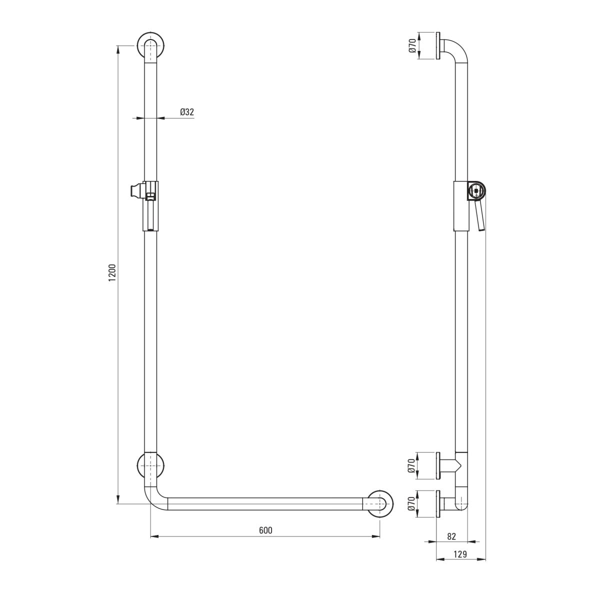 Der wandmontierte Winkelhalter, links, ist mit einer verstellbaren Halterung für die Handbrause ausgestattet. Hergestellt aus Edelstahl. Der vertikale Arm ist glatt, der horizontale Arm hat eine gewellte Oberfläche. Im Lieferumfang enthalten ist ein Montageset für harte Untergründe (Massivziegel-/Betonwände). Maximale Tragkraft 150 kg. Das Produkt ist ein Medizinprodukt.