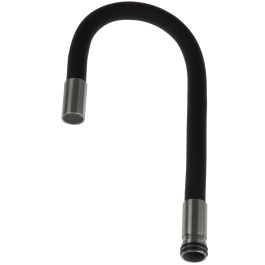Der flexible Auslauf ist ein Ersatzteil für die Küchenarmatur aus der Serie Luno. Der gebogene Auslauf zeichnet sich durch eine große Reichweite und einfache Handhabung aus. So lassen sich hohe Gefäße bequem mit Wasser füllen oder Obst und Gemüse abspülen. Der Auslauf ist mit einem Belüfter ausgestattet, der den Wasserstrahl mit Luft anreichert. Die stahlschwarze Farbe passt perfekt zu dunklen Granitspülen.