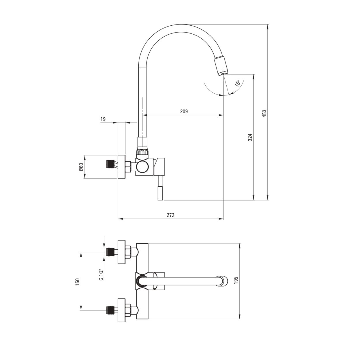 Die Wand-Küchenarmatur Luno besteht aus einem Stahlkörper und einem gebogenen Auslauf. Der bewegliche Auslauf ermöglicht eine freie Bewegung in verschiedene Richtungen, was das Spülen von Geschirr unterschiedlicher Größe und das Befüllen von hohen Töpfen oder Krügen mit Wasser erleichtert. Die Armatur ist mit einem Belüfter ausgestattet, der den Wasserstrahl mit Luft anreichert, wodurch Wasser gespart und der Verbrauch reduziert wird. Die Armatur ist in einem eleganten gebürsteten Stahlfarbton gehalten, der ihr ein modernes und stilvolles Aussehen verleiht. Der gebürstete Stahl unterstreicht nicht nur die Ästhetik der Armatur, sondern sorgt auch für Fingerabdruck- und Fleckenunempfindlichkeit, was die Reinigung erleichtert.