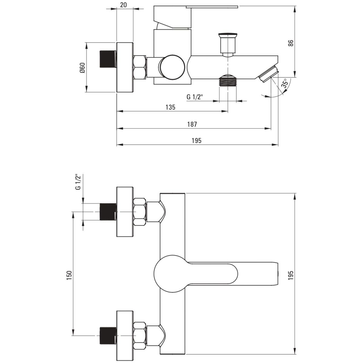 Deante Lupo Badewannen- und Duscharmatur Wandmontage || BLU_F10N