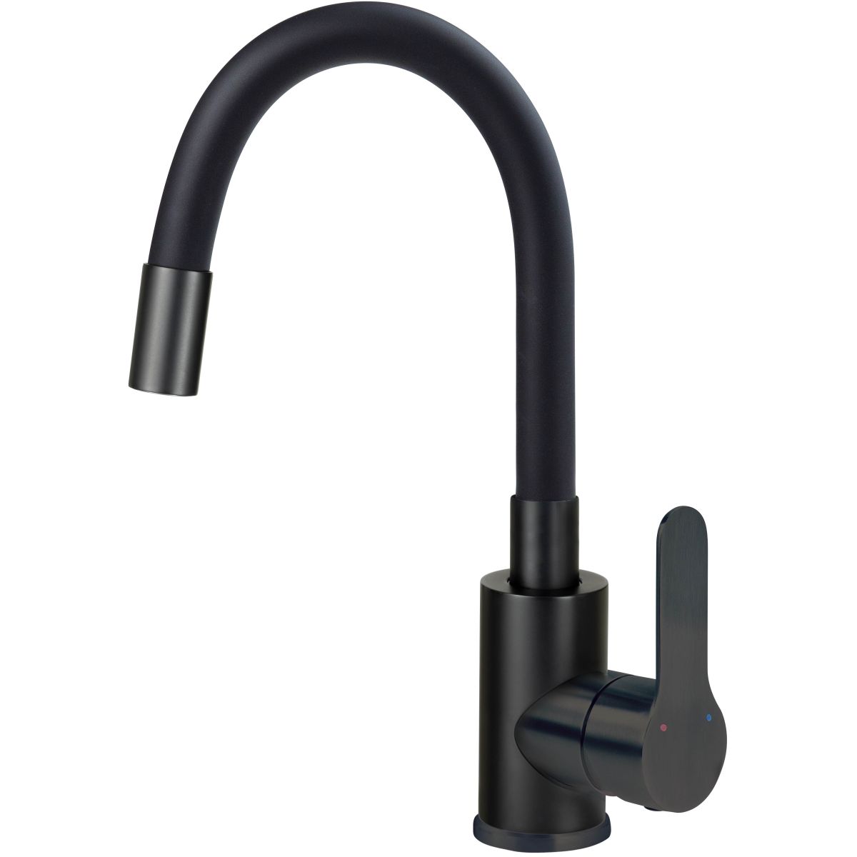 Diese praktische Armatur wurde für maximalen Komfort im täglichen Gebrauch entwickelt. Der gebogene Auslauf in Schwarz sorgt nicht nur für Eleganz, sondern ist auch äußerst praktisch. Er ermöglicht das einfache Befüllen größerer Behälter und hält das Waschbecken sauber. Der integrierte Strahlregler sorgt für Wassereinsparungen und erzeugt einen weichen, belüfteten Strahl. Der Körper aus Edelstahl garantiert lange Haltbarkeit und Korrosionsbeständigkeit. Die schwarze Beschichtung verleiht der Armatur nicht nur ein modernes Aussehen, sondern ist auch leicht zu reinigen, was im täglichen Gebrauch von entscheidender Bedeutung ist. Zusätzlich ist die Armatur mit Anschlussschläuchen und einer Montagehülse ausgestattet.