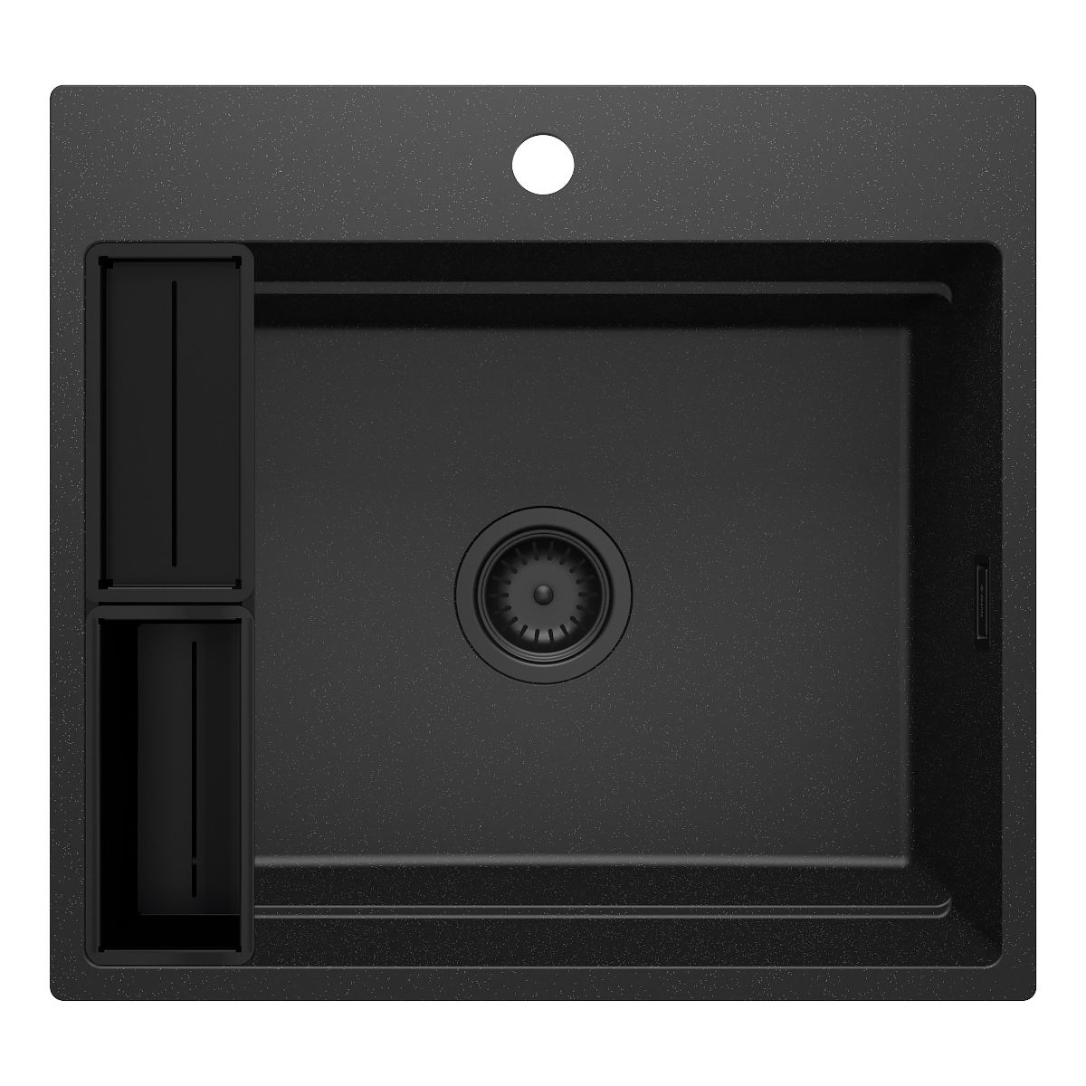 Die 760 mm lange Spüle Magnetic in Graphitmetallic ist die perfekte Lösung für alle, die funktionale und moderne Lösungen in der Küche schätzen. Die Spüle ist mit in die Masse eingelassenen Magneten ausgestattet, mit denen sich Körbe bequem an der seitlichen Ablage befestigen lassen und so zusätzlicher Stauraum für Küchenutensilien geschaffen wird. Die Spüle ist aus Granit mit antiseptischen und wasserabweisenden Eigenschaften gefertigt, was für Langlebigkeit und Hygiene sorgt.