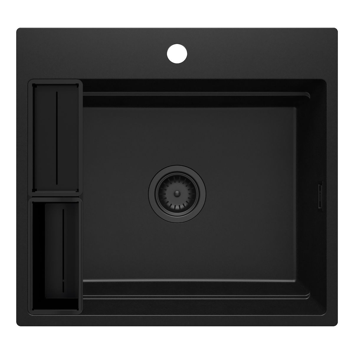 Die 560 mm lange Granitspüle Magnetic in der Farbe Nero ist ein elegantes Angebot für alle, die moderne Lösungen schätzen. Die Spüle zeichnet sich durch einzigartige magnetische Eigenschaften aus, die die Montage von Zubehör ohne zusätzliche Befestigungen ermöglichen. Die integrierten Körbe auf der seitlichen Ablage sind ideal für die Aufbewahrung von Küchenutensilien. Granit mit antiseptischen und wasserabweisenden Eigenschaften garantiert Hygiene und eine lange Lebensdauer.
