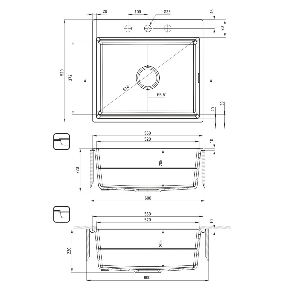 Deante Magnetic Granitspüle 56x52 cm schwarz ZRM_N10A