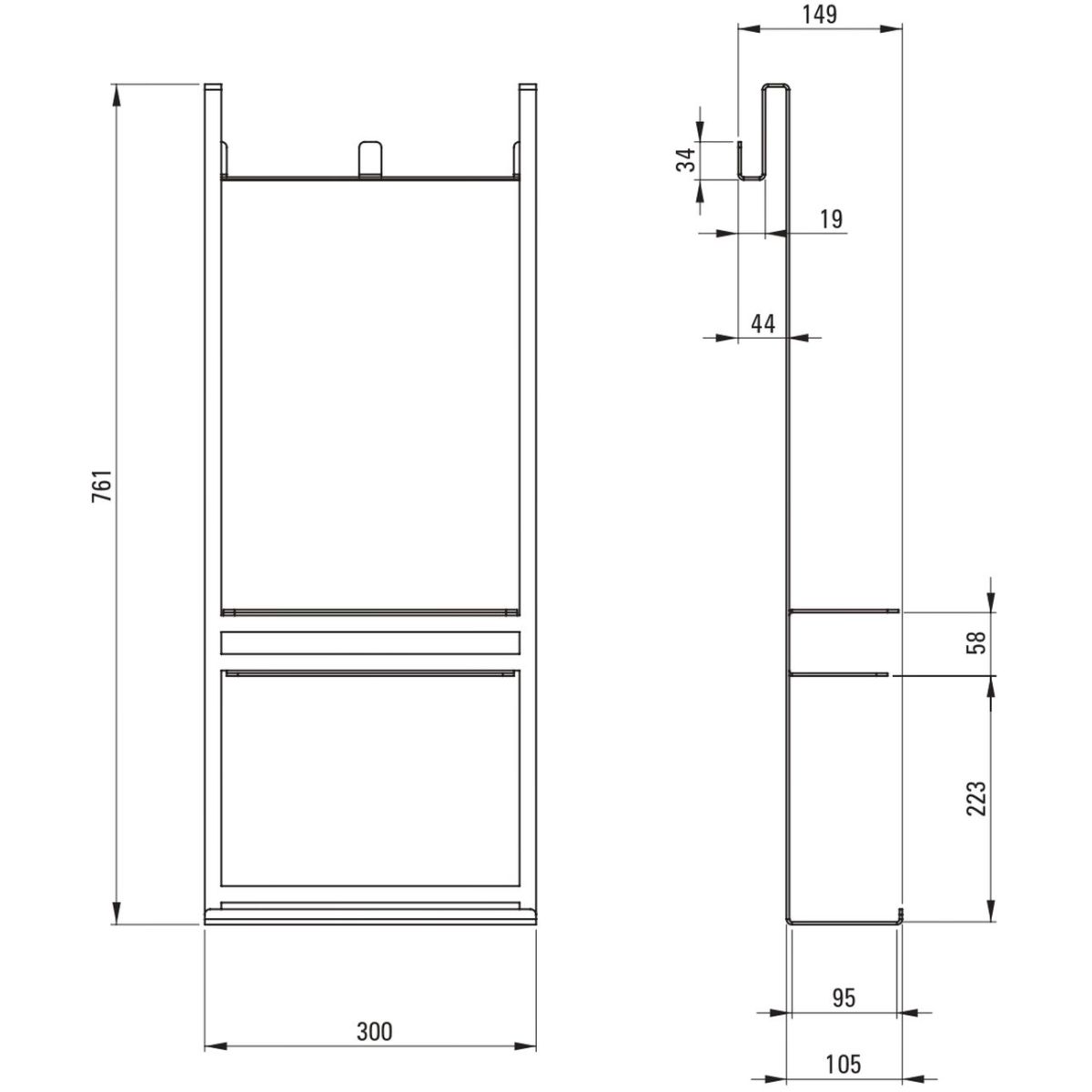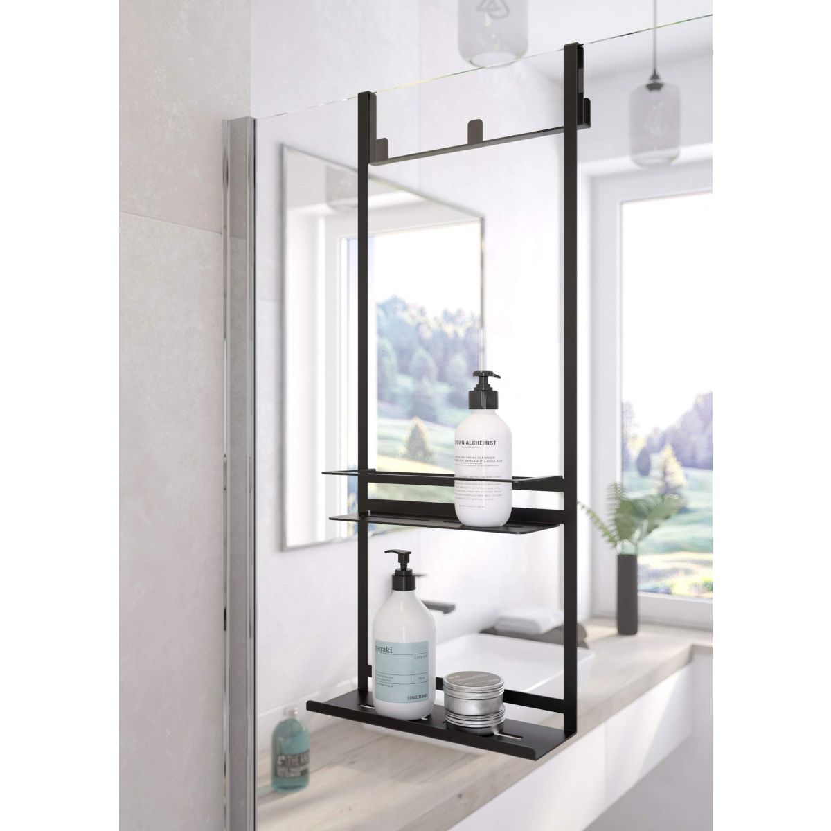 - Ablage mit zusätzlichen Außenhaken (für Handtücher, Bademäntel oder Unterwäsche)