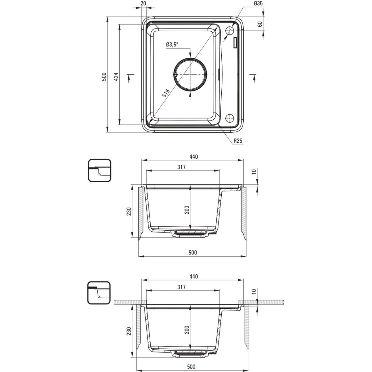 - Abflussdurchmesser: 3,5''