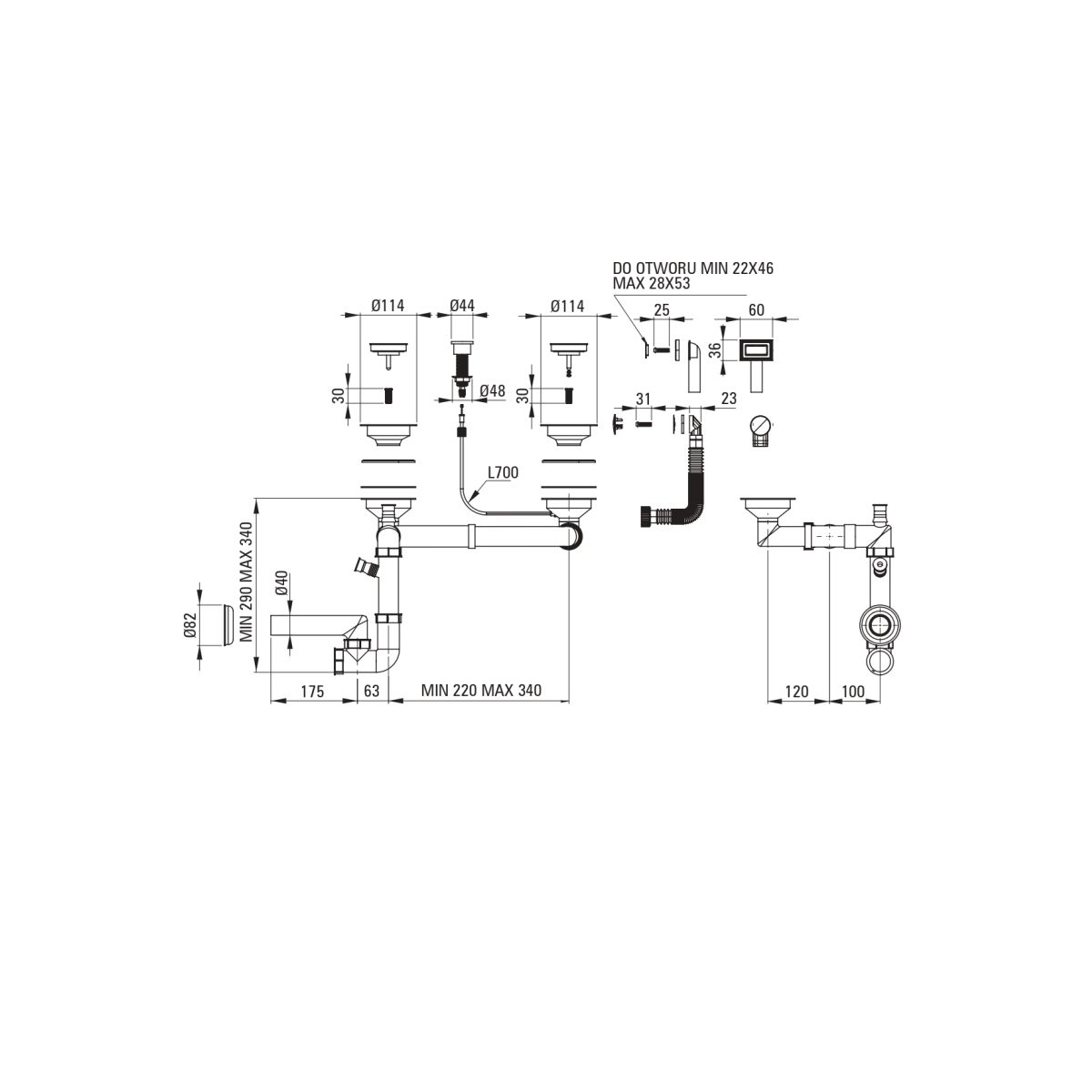 - Platzsparender Siphon Space-Saver, der u. a. die Mülltrennung erleichtert