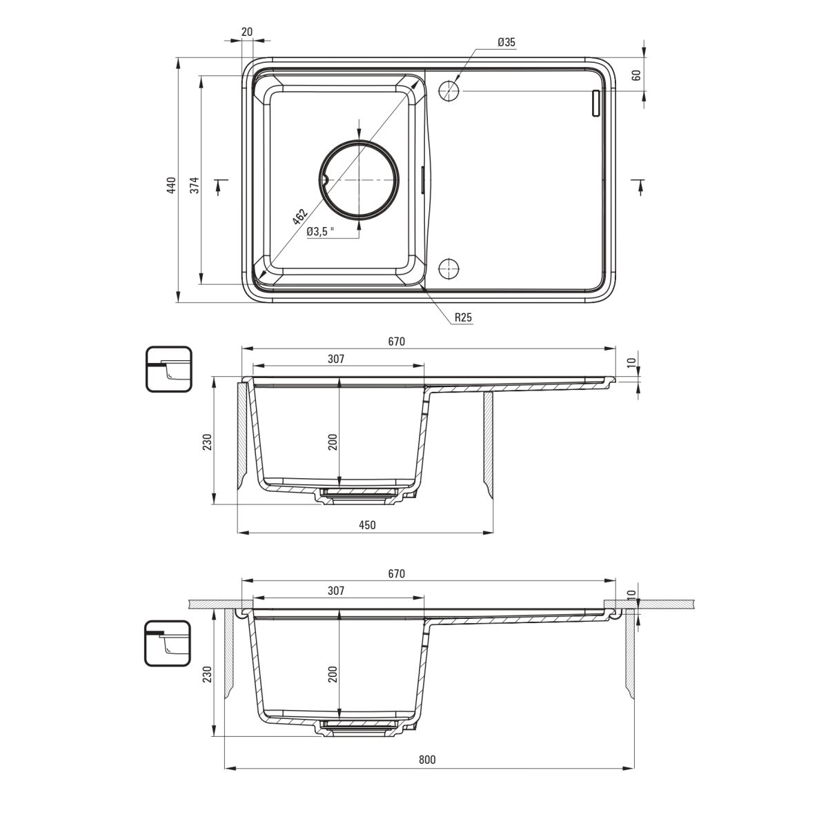 - Abflussdurchmesser: 3,5''