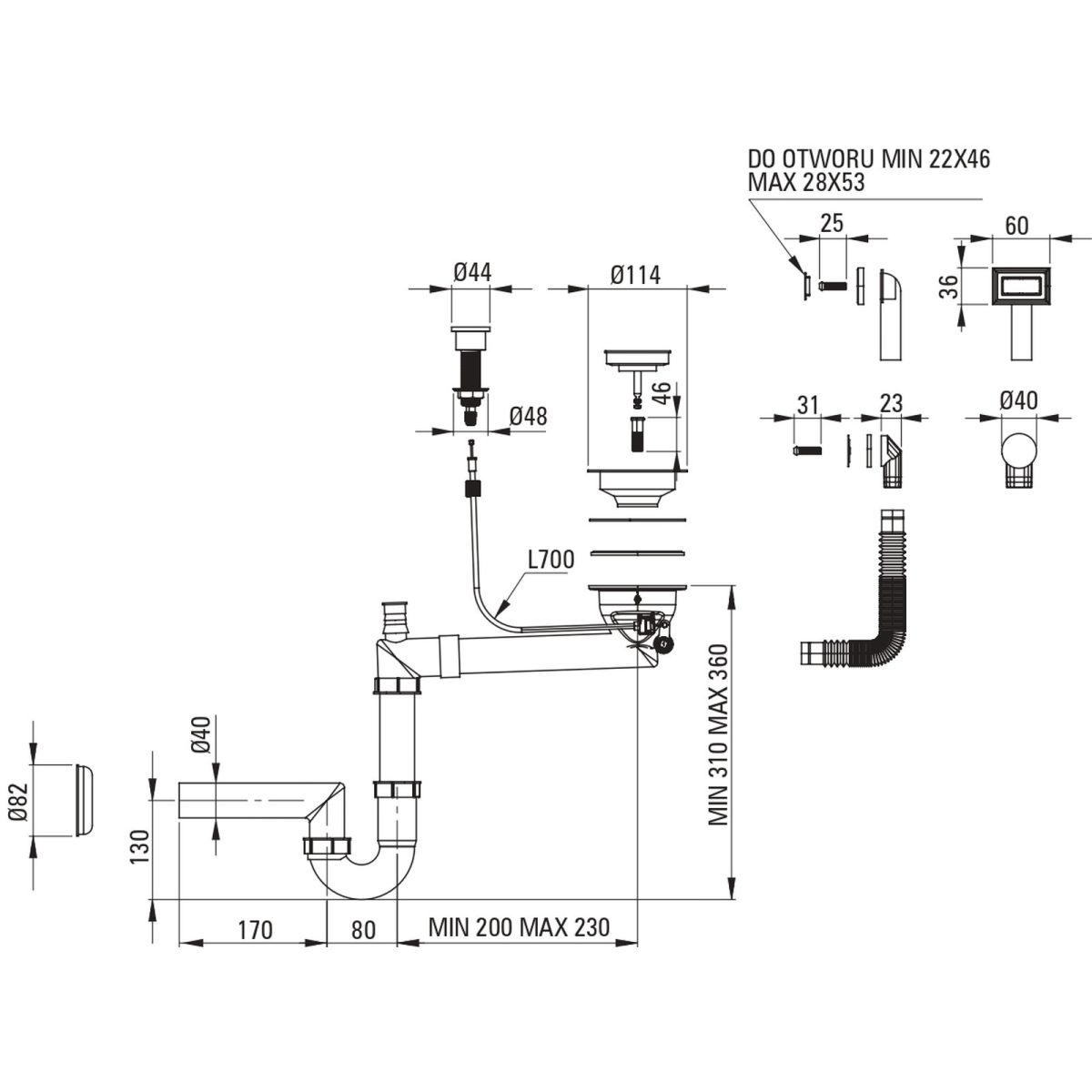 - Platzsparender Siphon Space-saver, der u. a. die Mülltrennung erleichtert