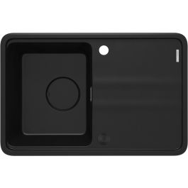 Die Spüle Momi ist eine perfekte Kombination aus Funktionalität und Stil. Dieses Modell mit einer Kammer und einem Abtropfbereich sieht nicht nur schön aus, sondern erfüllt auch perfekt die praktischen Anforderungen in der Küche. Ein interessantes Element ist die elegante Abdeckung aus Granit, die das Sieb diskret verbirgt. Dank des automatischen Click-Stopfens lässt sich der Abfluss mit einem Klick mühelos öffnen oder schließen, was Komfort und Effizienz bei den täglichen Aufgaben garantiert. Momi ist auch eine funktionale Arbeitsstation, die eine bequeme Zubereitung von Mahlzeiten ermöglicht, da alle notwendigen Utensilien griffbereit sind. Mit seiner tiefschwarzen Oberfläche verleiht es Eleganz und Raffinesse.