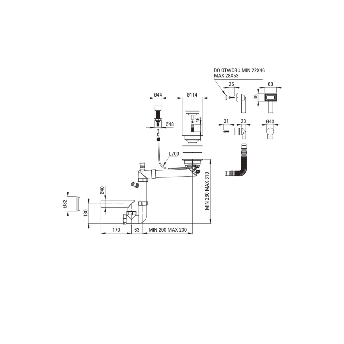 - Platzsparender Siphon Space-Saver, der u. a. die Mülltrennung erleichtert