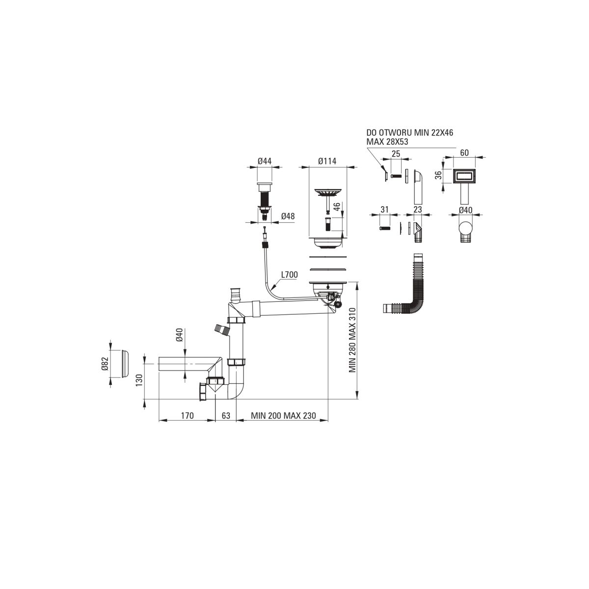 - Platzsparender Siphon Space-Saver, der u. a. die Mülltrennung erleichtert