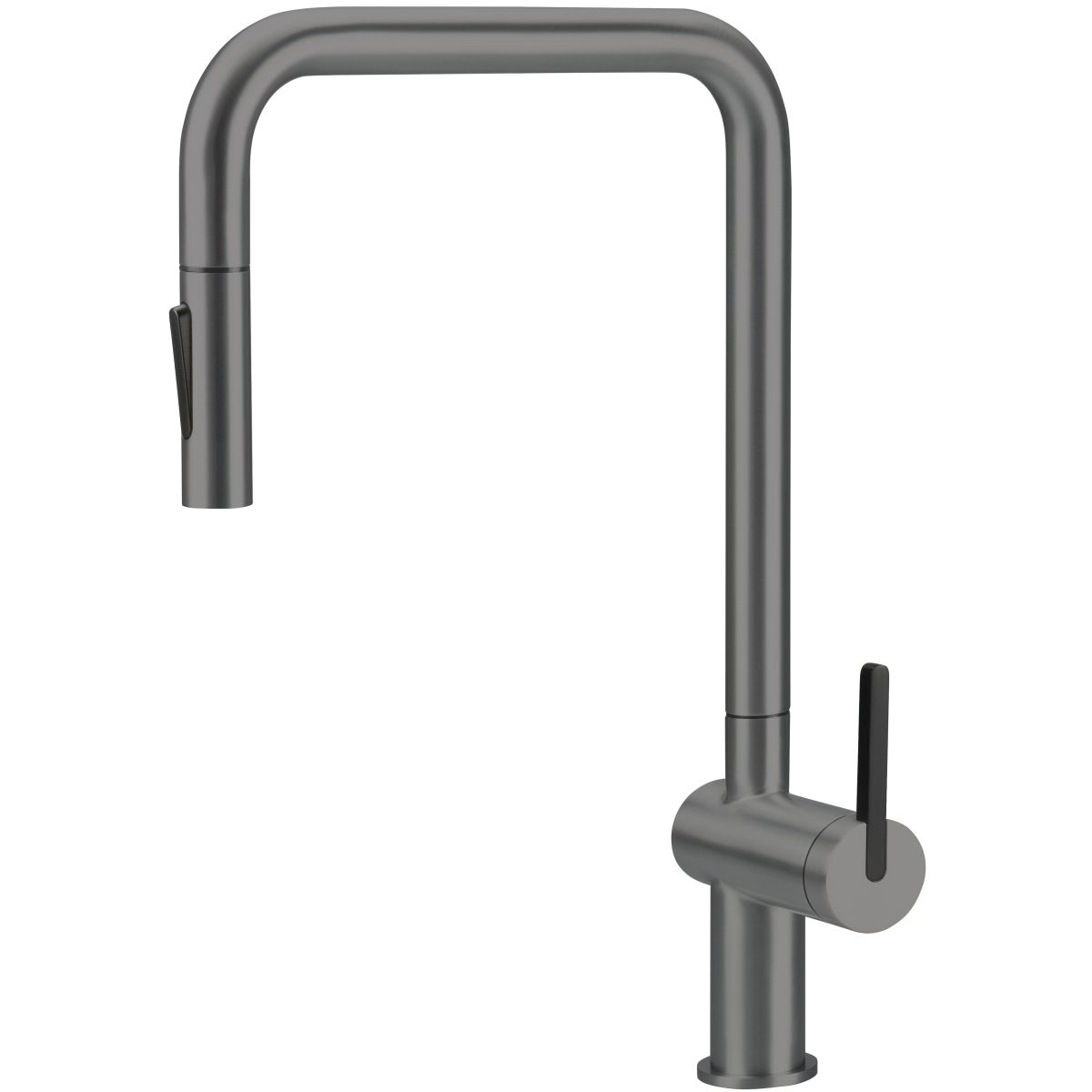 Die Küchenarmatur Momi aus hochwertigem Edelstahl zeichnet sich durch einen eleganten, rechteckigen Auslauf aus, der ihr ein modernes Aussehen verleiht. Der eingebaute Belüfter versorgt den Wasserstrahl effektiv mit Luft, was zu einem geringeren Verbrauch führt. Der ausziehbare Auslauf garantiert eine komfortable Nutzung und ermöglicht eine einfache Handhabung des Wassers bei verschiedenen Arbeiten im Spülbereich. Die Armatur bietet außerdem zwei Strahlarten: einen belüfteten Strahl, ideal für alltägliche Aufgaben, und einen sanften Regenstrahl, ideal zum Spülen von Obst und Gemüse. Momi, mit einer eleganten, matt gebürsteten Bronzeoberfläche, ist die perfekte Wahl für moderne Küchen und fügt sich ideal in moderne Innenräume ein.