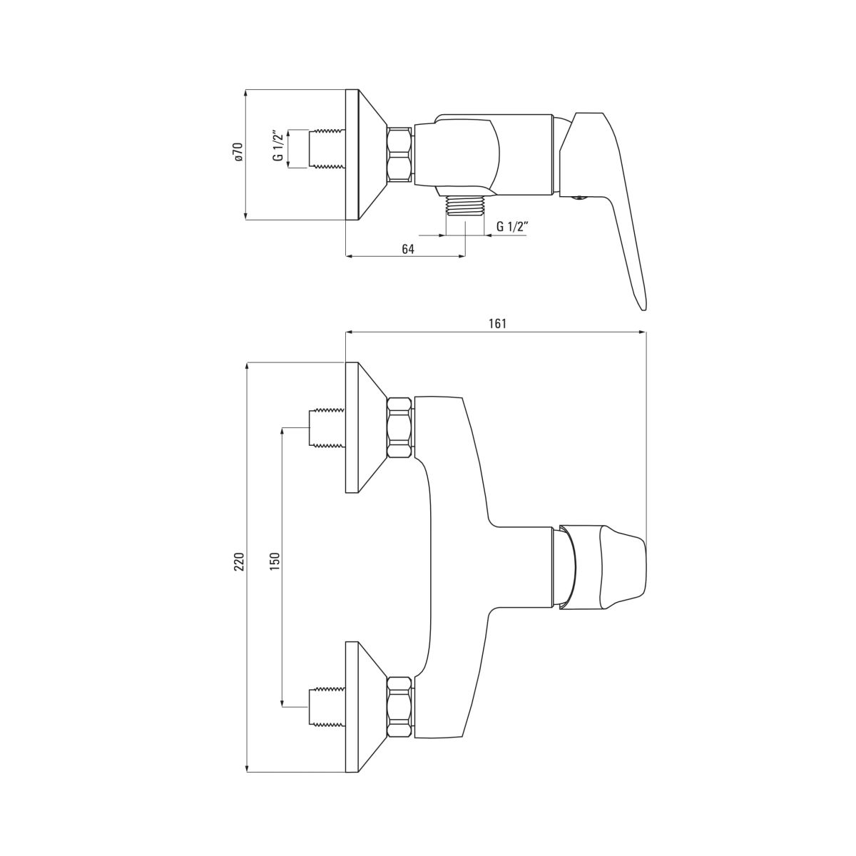 - Gesamthöhe der Armatur [mm]: 161