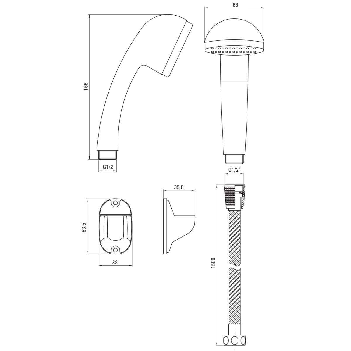 - Inbegriffen: Duschkopf, Duschschlauch, Duschhalter
