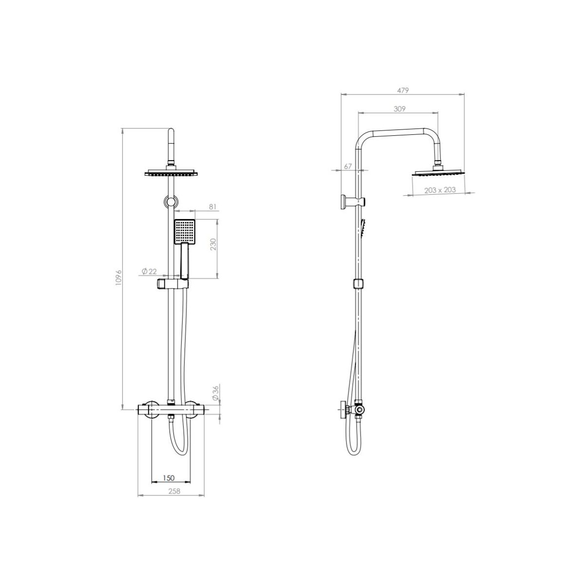 - verchromter Duschkopf mit den Maßen 203 x 203 mm