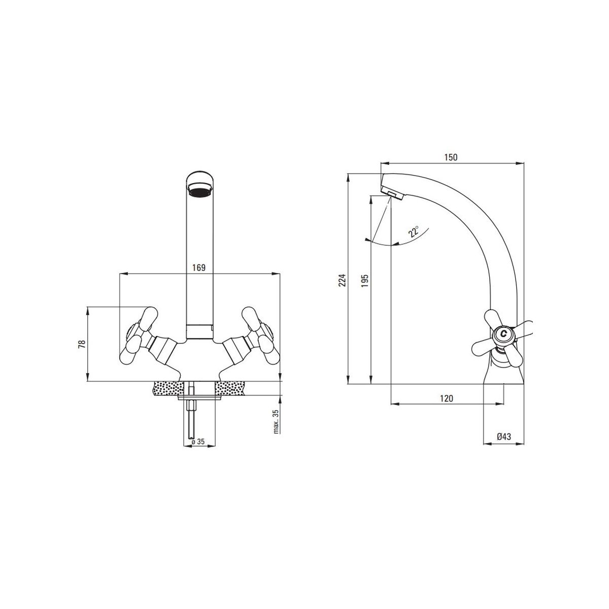 - schwenkbarer Auslauf mit 360° Drehwinkel
