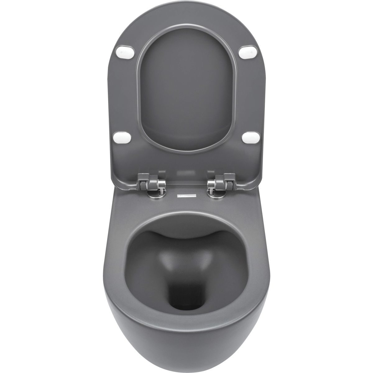 Die wandhängende Toilettenschüssel ohne Rand aus der Kollektion Peonia ist ein ideales Produkt sowohl für kleine Badezimmer als auch für große Badezimmer. Die keramische, wandhängende Toilettenschüssel in origineller Titanoptik zeichnet sich durch das Fehlen eines Standardrandes aus, der schwer zu reinigende Ecken, Kanten und Vertiefungen aufweist. Das Design der Toilettenschüssel verkürzt die Reinigungszeit und sorgt dafür, dass weniger Wasser zum Spülen benötigt wird, ganz im Sinne der Proeco-Philosophie der Marke Deante. Der Soft-Close-Sitz ist separat erhältlich.