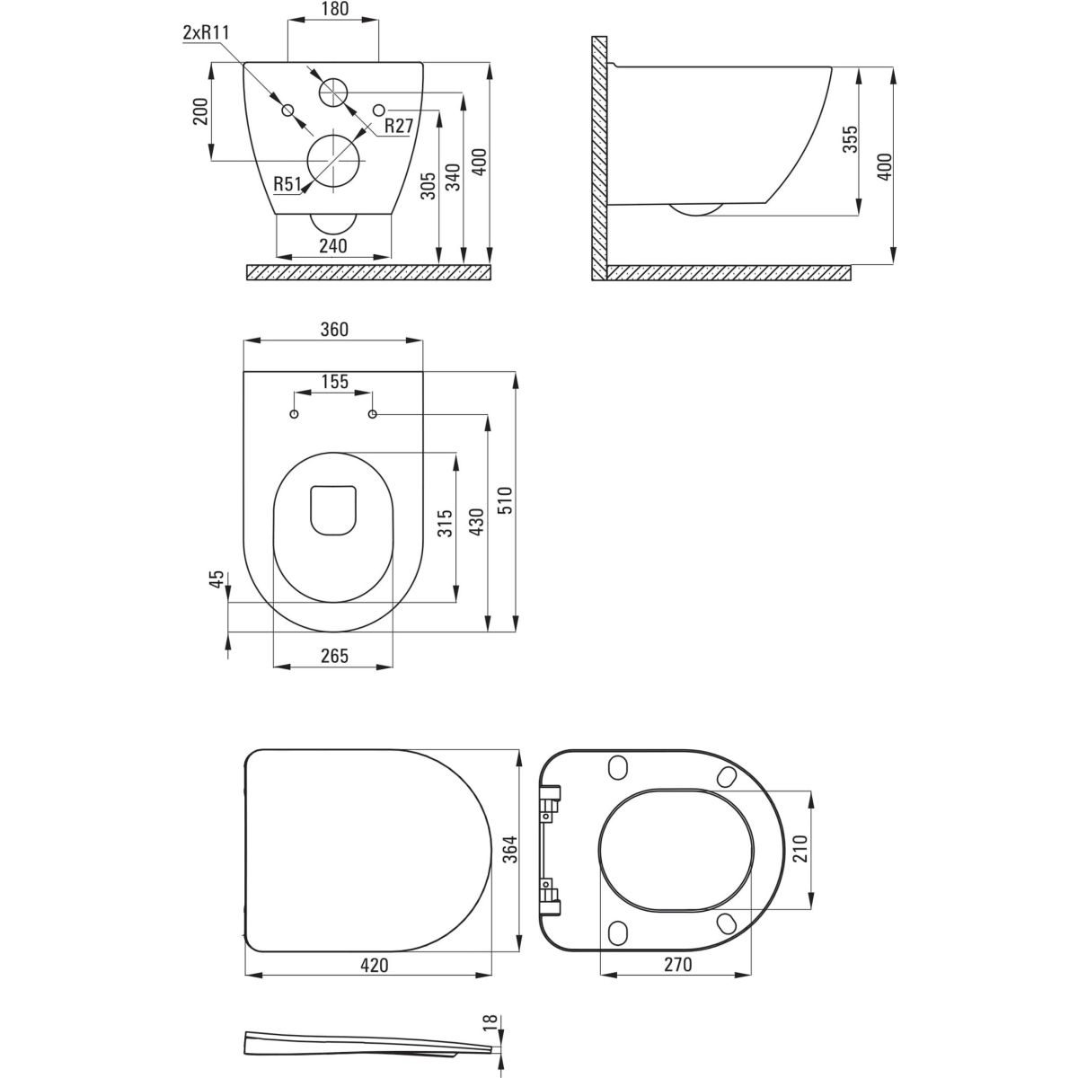 Deante Peonia WC-Becken mit Absenkautomatik-Sitz hängend Spülrandlos weiß Glanz CDED6ZPW