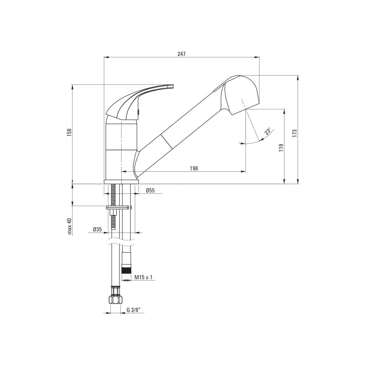 - Gesamthöhe der Armatur: 17,3 cm