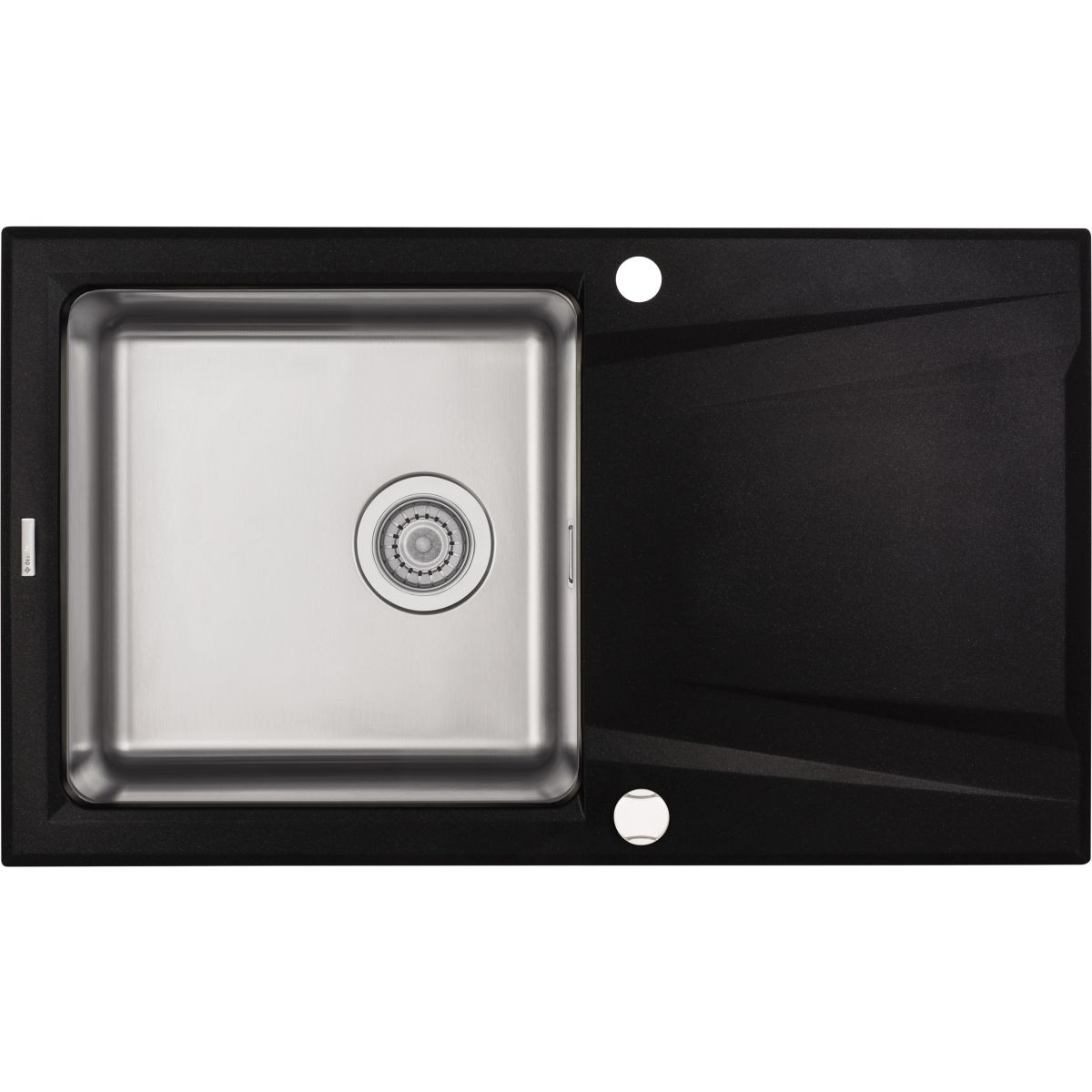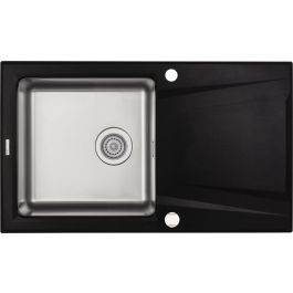 Die 1-Kammer-Spüle Prime aus Granit und Stahl mit Abtropffläche verbindet die klaren und zugleich eleganten Formen der Granitabtropffläche mit der Funktionalität einer großen Stahlkammer. Die außergewöhnlich große und tiefe Kammer aus dickem Stahl mit gebürsteter Oberfläche kontrastiert mit dem graphitfarbenen Metallic-Ton und den scharfen Linien des Abtropfbereichs, der den für Deante-Spülbecken typischen aerodynamischen Charakter aufweist. Der Granitmischung wurde Silber hinzugefügt, das die Vermehrung von Bakterien hemmt, und die Kammer wurde aus Edelstahl vom Typ 304 gefertigt – einer der edelsten Sorten, die keine Gerüche aufnimmt, kratzfest, verfärbungsbeständig und thermoschockbeständig ist und für ihre antiseptischen Eigenschaften bekannt ist. Die Spülbecken Prime, die zwei scheinbar sehr unterschiedliche Materialien kombinieren, sind auch sehr vielseitig, was die Innenraumgestaltung betrifft, und passen sowohl zu minimalistisch als auch zu skandinavisch oder industriell eingerichteten Räumen.