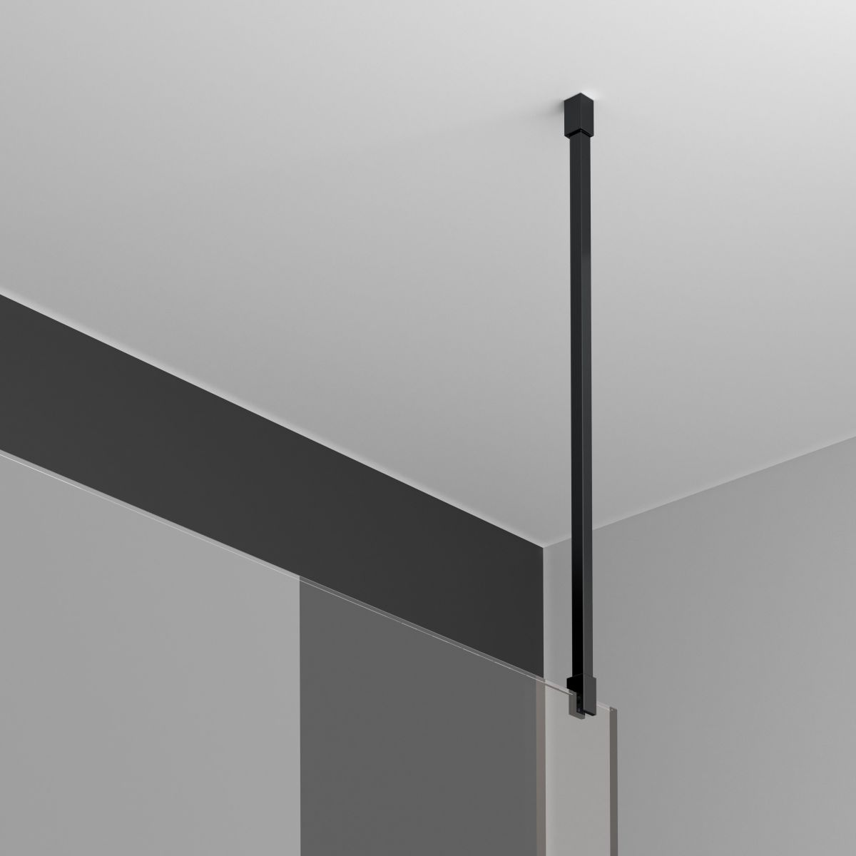 Die Deckenhalterung ist eine hervorragende Lösung zur Versteifung der Duschkabine und wird direkt an der Decke montiert. Sie ist ein idealer Ersatz für die herkömmliche Querstange, insbesondere in Situationen, in denen deren Montage aus ästhetischen Gründen nicht möglich oder unerwünscht ist. Dank ihrer soliden Konstruktion sorgt die Halterung für Stabilität und Sicherheit der Duschkabine und verleiht ihr gleichzeitig ein modernes Aussehen. Es handelt sich um eine praktische und elegante Lösung, die sich perfekt für jedes Badezimmer eignet und sowohl für die Funktionalität als auch für das Aussehen Ihres Duschbereichs sorgt. Sie ist in mattem Schwarz gehalten und passt perfekt zu den Prizma-Duschkabinen in der Ausführung Nero.