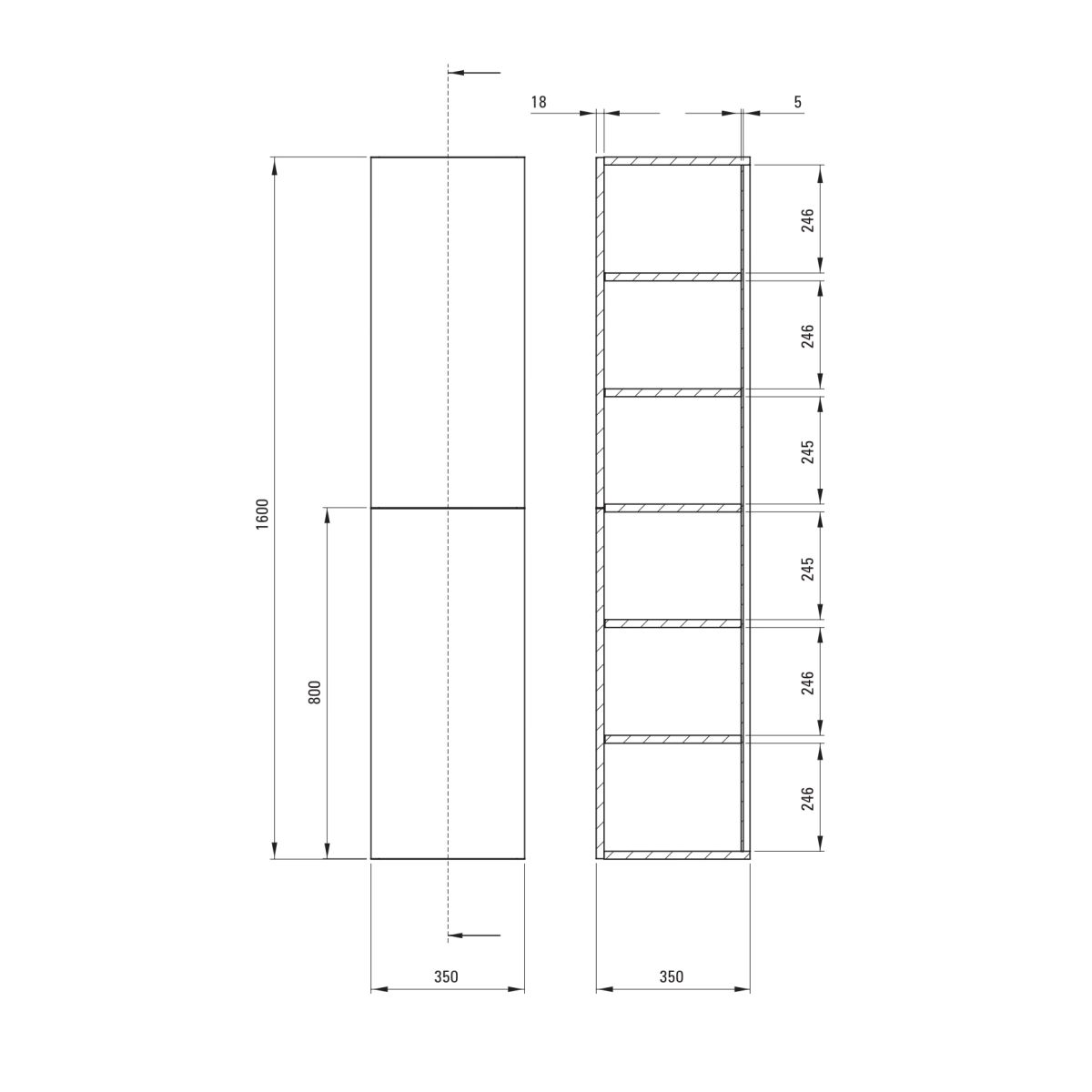 Der Prizma-Badezimmerschrank mit den Maßen 350 x 350 x 1600 in der Farbe Weiß glänzend ist eine elegante und funktionale Ergänzung für jedes Badezimmer. Der Schrank ist in zwei Fächer unterteilt, die jeweils mit zwei verstellbaren Einlegeböden ausgestattet sind. Sein minimalistisches Design ohne Griffe und Fräsungen verleiht dem Raum eine moderne, ästhetische Harmonie. Darüber hinaus können die Schranktüren je nach Bedarf des Benutzers auf der linken oder rechten Seite montiert werden, was die Funktionalität erhöht. Dank der hängenden Konstruktion sieht das Möbelstück nicht nur leicht aus, sondern erleichtert auch die Aufrechterhaltung der Ordnung im Badezimmer. Der hochwertige UV-Lack, mit dem die Oberfläche des Pfostens beschichtet ist, sorgt für Langlebigkeit und Widerstandsfähigkeit im täglichen Gebrauch und verleiht ihm ein glänzendes Aussehen. Das in Polen hergestellte Produkt wird vollständig montiert geliefert und ist sofort nach dem Auspacken einbaufertig. Es muss lediglich an der Wand aufgehängt werden.