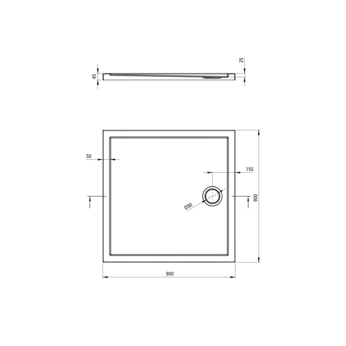 Deante Prizma Quadratische Duschwanne 90x90 cm weiß KTJ_081B